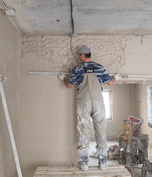 Механизированная штукатурка представляет собой быстрый и аккуратный процесс обработки стен.